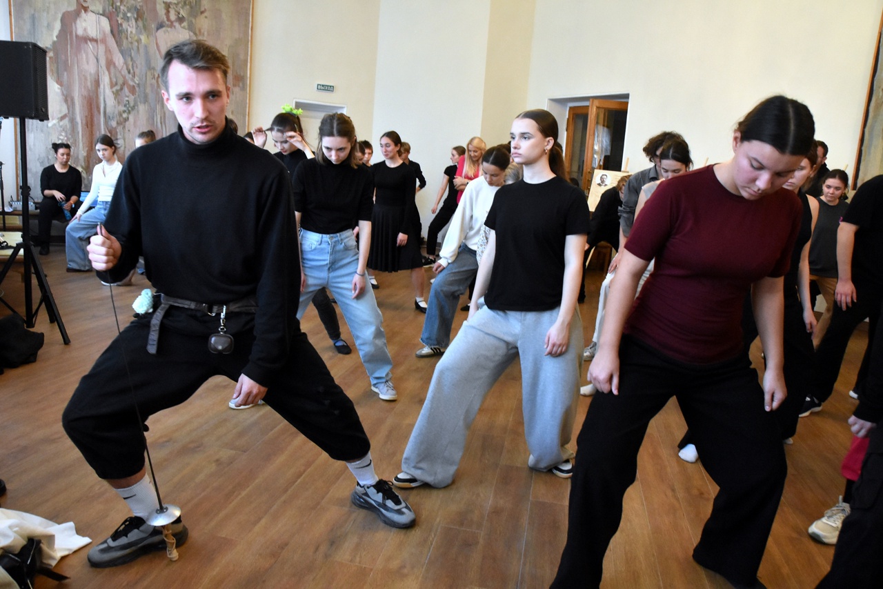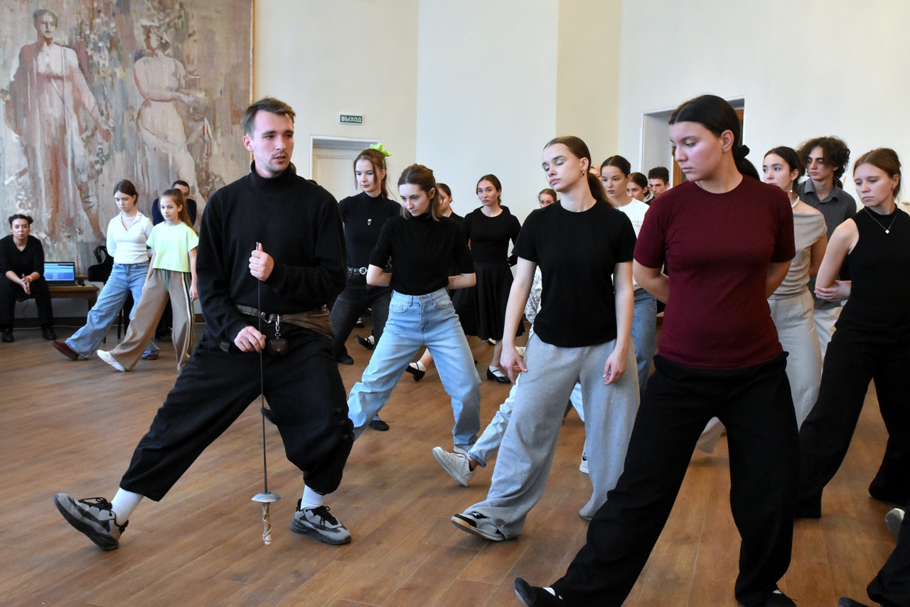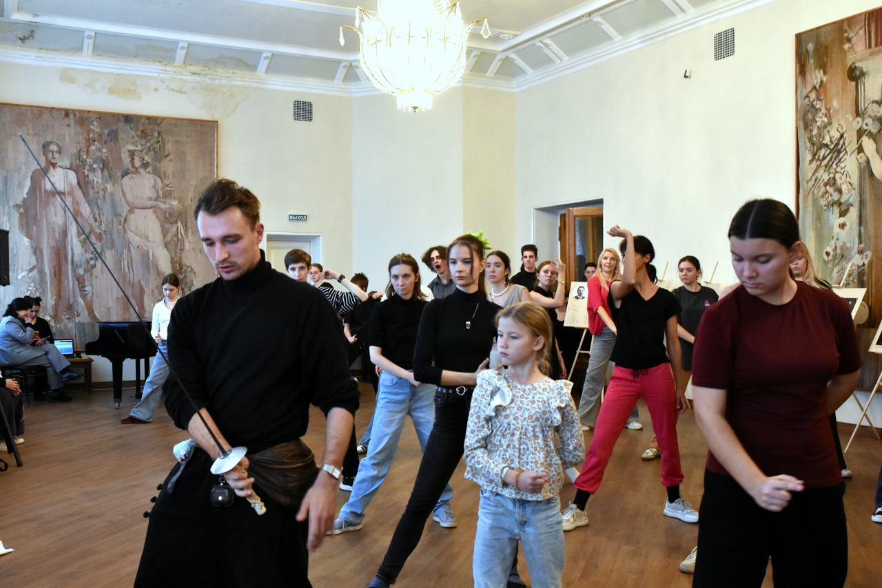 Необычный и зрелищный мастер-класс по сценическому фехтованию провёл артист театра Евгений Кравцов. Участники с воодушевлением осваивали базовые приёмы сценического боя и постигали искусство создания иллюзии настоящего поединка.