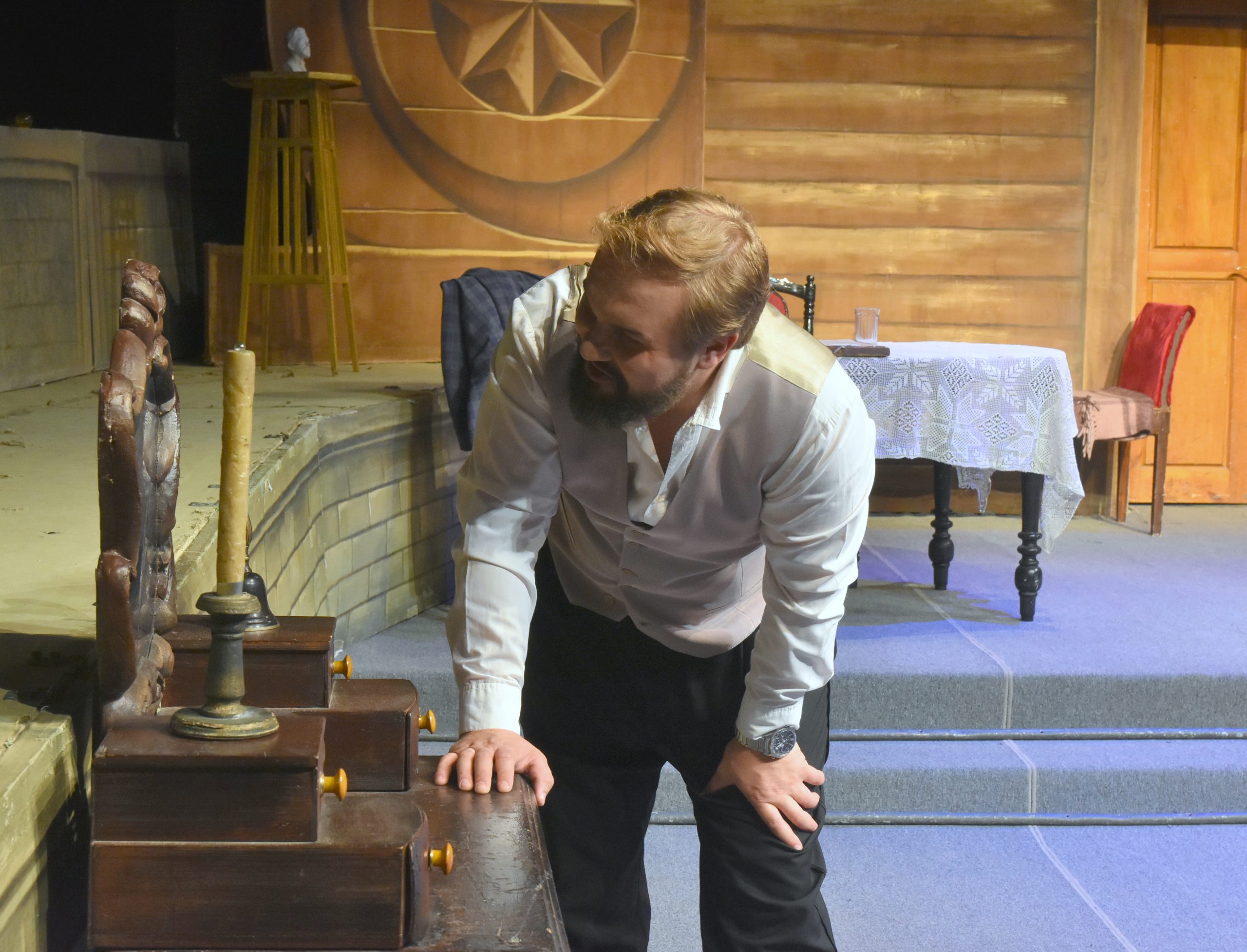 4 ноября прошла открытая репетиция спектакля «Предложение с медведем под диваном» под режиссурой заслуженной артистки Республики Крым Нино Станиславской.
