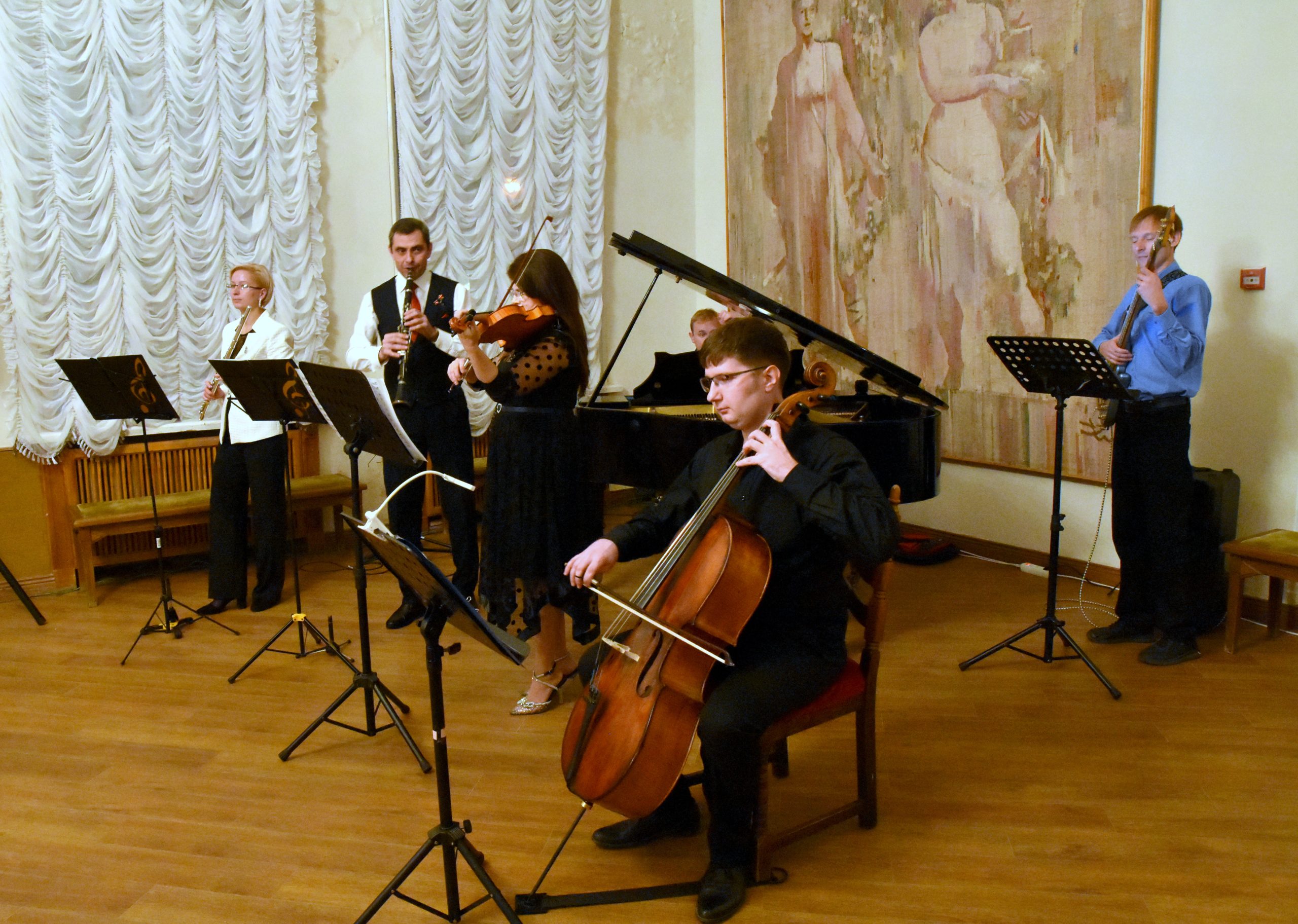 Песни в исполнении артистки театра Радмилы Фадеевой и музыка ансамбля «Консонанс» под руководством заслуженного работника культуры Республики Крым Антона Калиниченко создали уникальную атмосферу вечера.